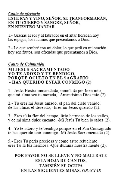 Cantos del Tiempo Ordinario para las misas dominicales de 9:00 a. m. y !3:30