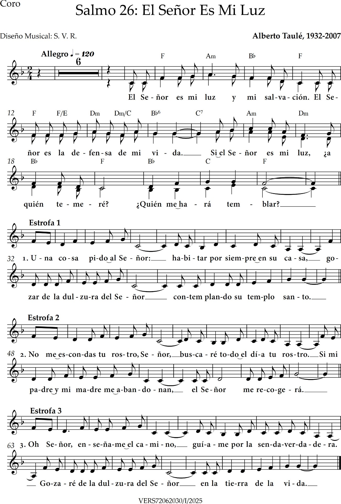 El Señor es mi luz, compuesto por Alberto Taulé.
